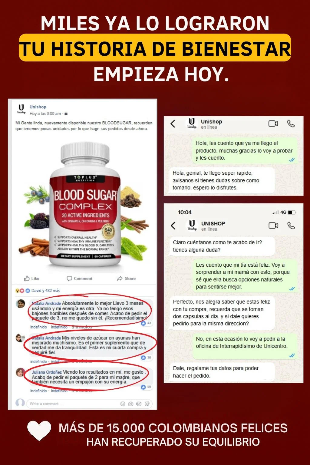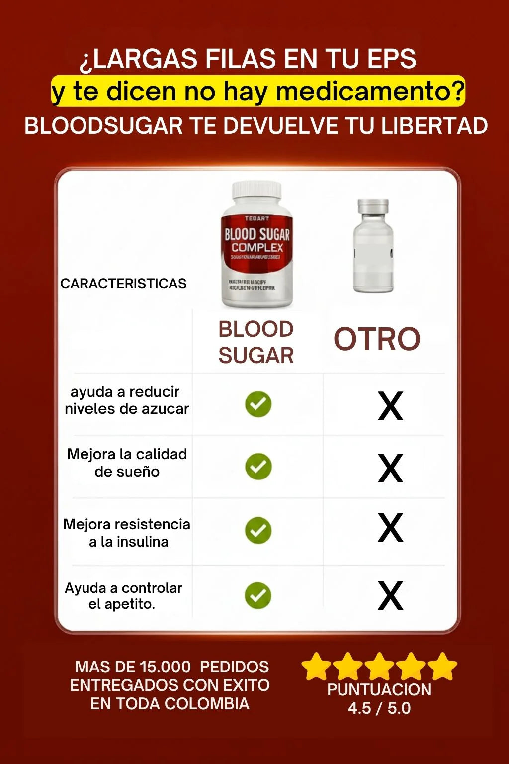 No contiene medicamntos que afecten el organismo. A diferencia de los hipoglucemicos orales, blood sugar complex impacta los niveles gicemicos® proporciona proporcionando menores pinchazos y menores sintomas asociados a la hiperglicemia.