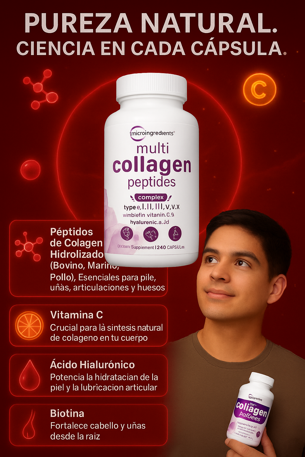 Se utiliza colágeno 100 % hidrolizado de origen bovino, cartílago de pollo y membrana de huevo, combinando los tipos I, II, III, V y X. Todos los ingredientes cuentan con certificación GMP y Non-GMO, garantizando pureza y trazabilidad.